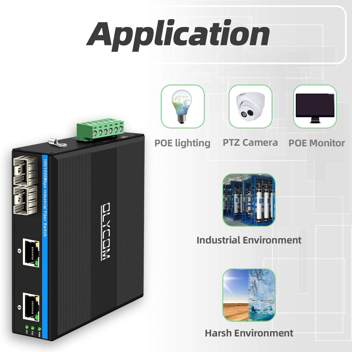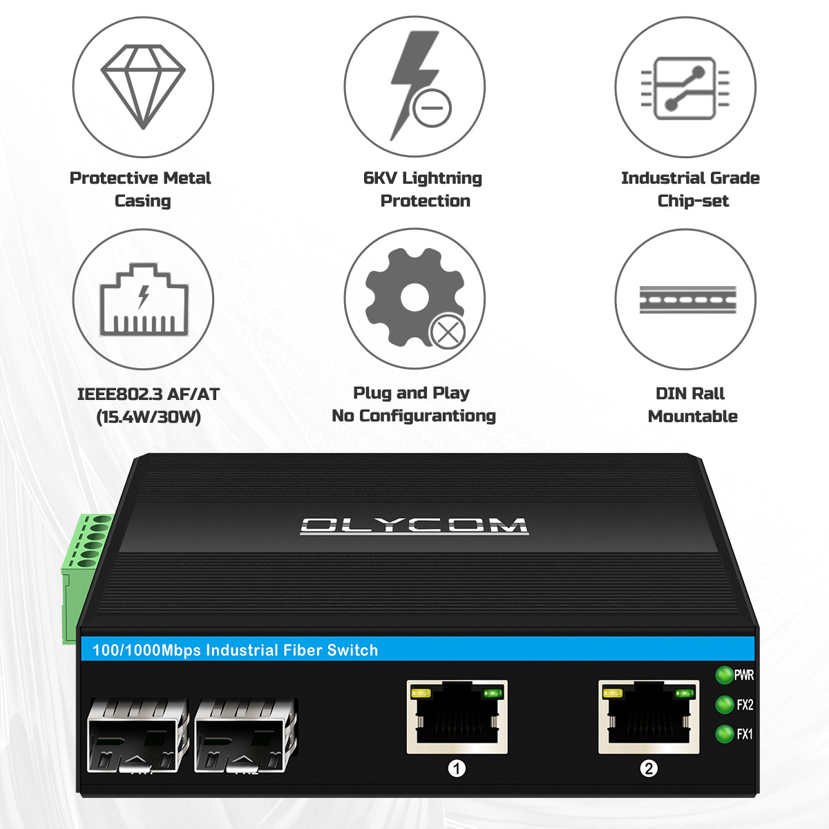 Product Name | 10/100/1000Mbps Industrial POE Fiber Switch (2F+2TP) |