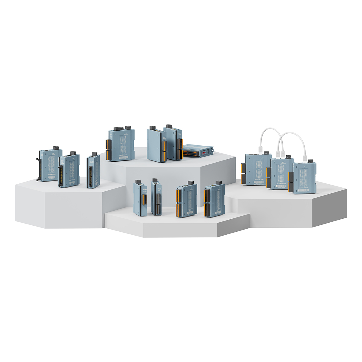 OM524E vertical internal bus distributed scalable coupler, Profinet-RT bus, 3 RJ45 ports, WellAUBUS backplane bus (black RJ45 port cable cascade, Category 5e cable module length limit of 20 meters, extension cable total limit of 150 meters), expandable to 16 modules, 24VDC power supply, with reset factory parameters DIP switch, the main body has 16DI (common cathode/common anode input), 16DIO (PNP input/PNP output configurable, 2-way group configuration), IP20 protection level, DN35 rail installation